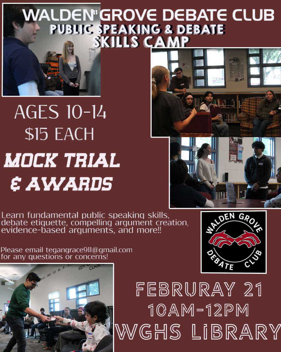 WGHS Debate Club - Public Speaking & Debate Skills Camp on 02/21/26 at 10:00 AM in the WGHS Library